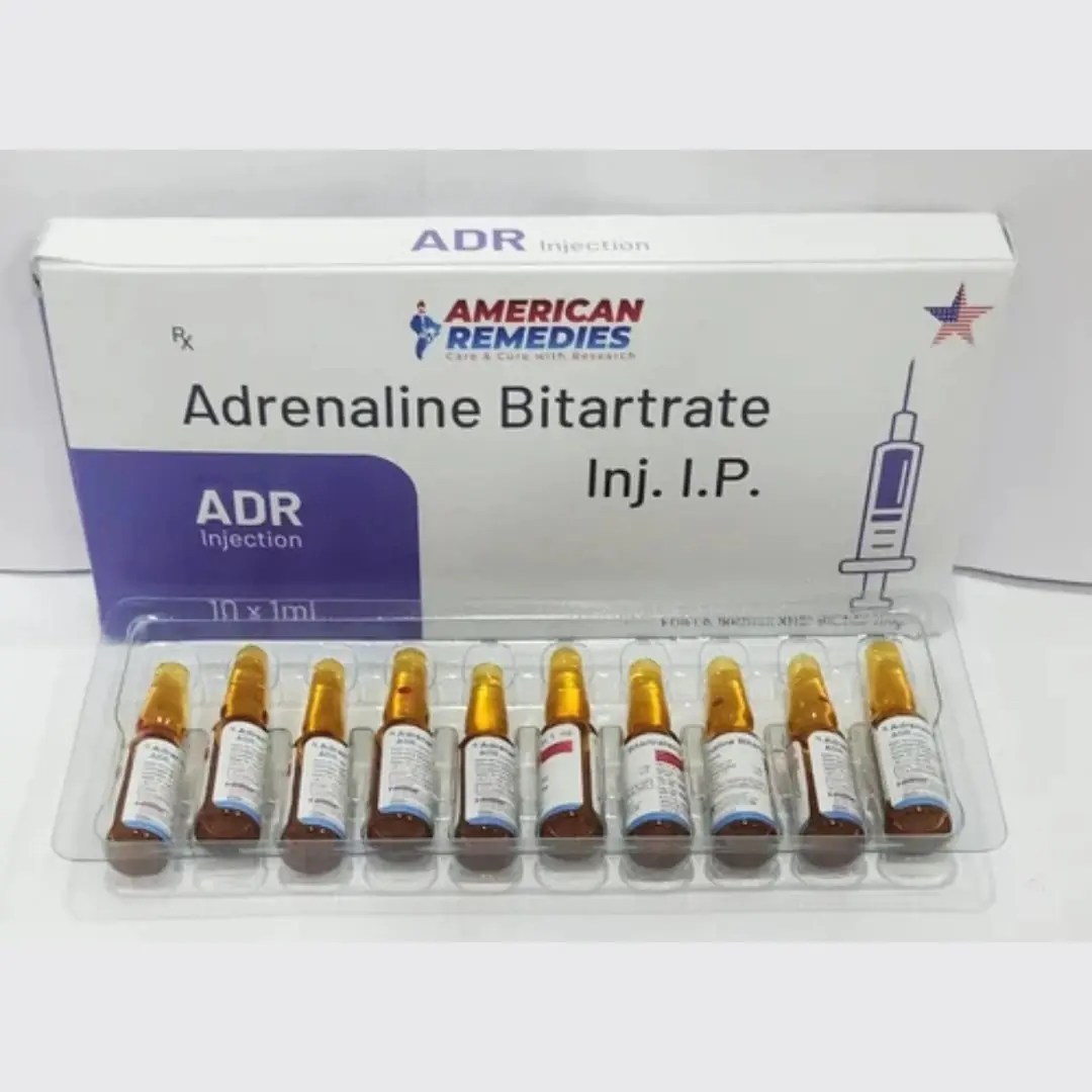 Adrenaline Bitartrate Injection is a life-saving sympathomimetic agent used in emergency situations to treat severe allergic reactions, anaphylaxis, cardiac arrest, and acute asthma attacks. It rapidly stimulates the heart, relaxes airway muscles, and constricts blood vessels, restoring vital functions and stabilizing critical conditions.